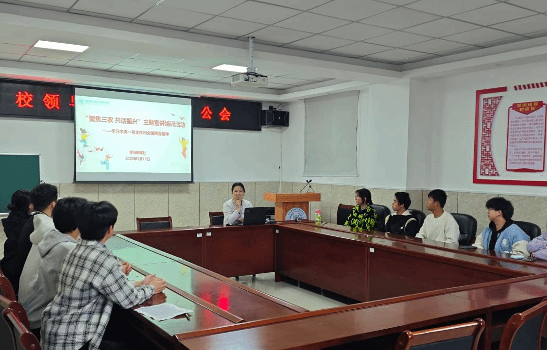 为深入学习贯彻2025年中央一号文件和全国两会精神,增强涉农高校学生对“三农”工作重要性的认识,3月19日下午,青马耕读社在闽台楼501党建活动室组织开展了“聚焦三农 共话振兴”主题宣讲培训活动。活动由青马耕读社指导教师陈雅丽主持。