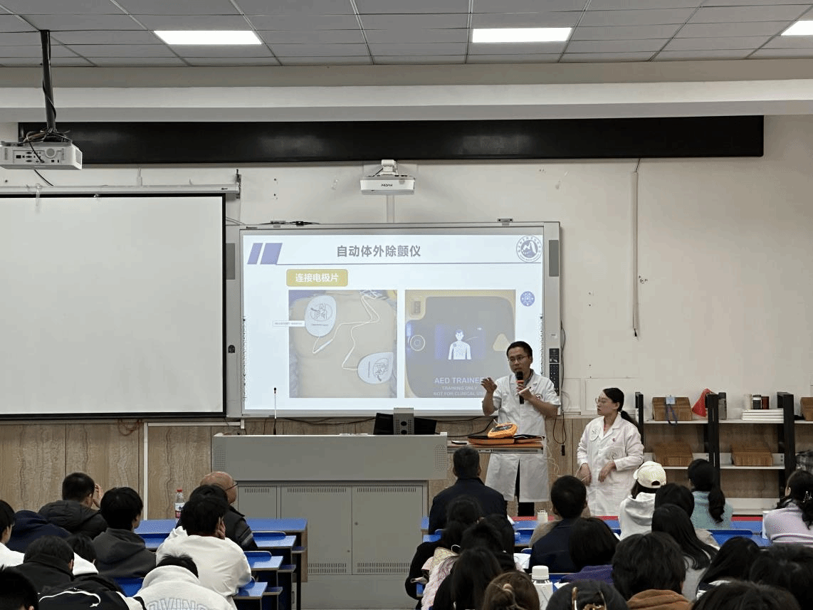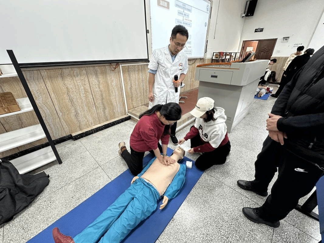 为了让大家更直观地掌握心肺复苏技能,庄医生在现场进行了实操演示。他一边操作一边讲解,将理论知识与实践操作紧密结合,使现场师生对心肺复苏技能有了更深入的了解。随后,在庄医生的指导下,部分师生上台进行了实操体验,他们纷纷表示,通过亲身体验,对心肺复苏技能有了更直观的认识和掌握。