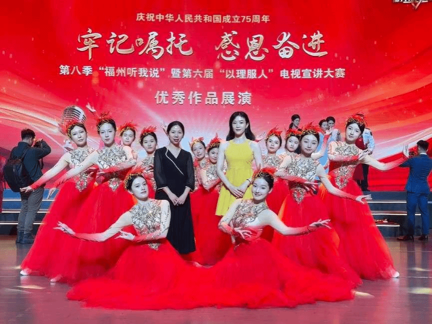 深化美育浸润,扎根时代生活。为庆祝中华人民共和国成立75周年,由中共福州市委宣传部、中共福州市委讲师团主办,福州广播电视台承办的第八季《福州,听我说》暨第六届“以理服人”宣讲大赛优秀作品展演于2024年9月23日上午在福州工人文化馆举行。我院师生受邀编排歌曲《永恒的旋律》舞蹈部分并参加演出。
