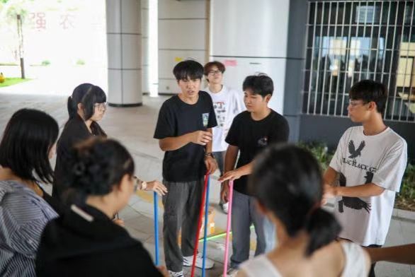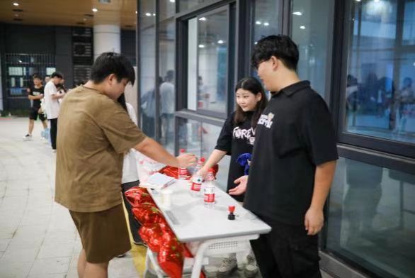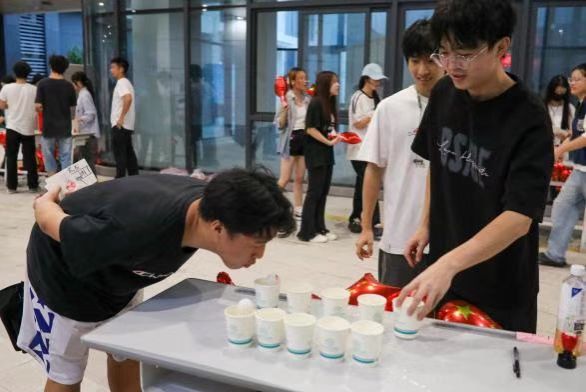 “手绘书签”尤显心意,同学们用画笔绘出对祖国的深情,五星红旗、国徽等元素闪耀其上,每一张独一无二的作品,承载着对祖国的热爱与祝福。此外,活动现场还举行了“精准投壶”、“不倒森林”、“吹球过河”、“大象鼻子单眼弹瓶盖”等趣味小游戏,笑声不断,将现场气氛推向高潮,展现出同学们青春的朝气和对生活的热爱。