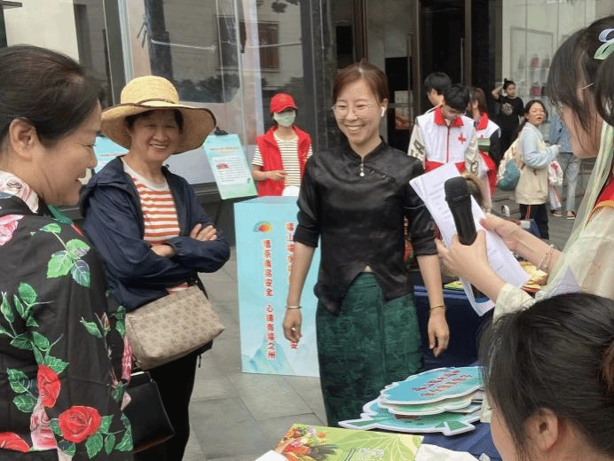 本次活动模式为“国潮+食安”,即以国风为载体进行食安宣传。我院服务队的志愿者们身着汉服,在国风场景下,热情分发创城宣传单页,讲解食安知识,深入宣传食安创城内容。现场更有专业的工作人员,为群众展示茶艺表演,共襄茶文化盛宴。