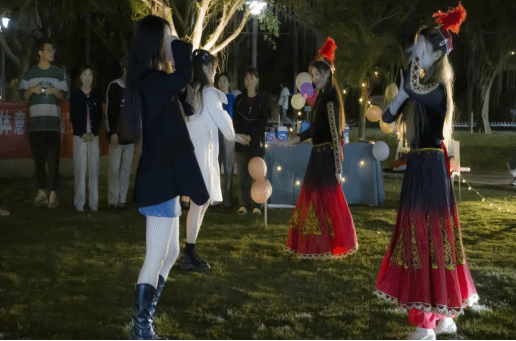 现场一场又一场的精彩演出,展现出每一个舞者独特的魅力,充满动感和激情的团体舞表演更是叫人移不开眼,台下早已蠢蠢欲动的观众,少数民族的同学们对其进行了现场舞蹈教学,这不仅加强了各民族同学之间的感情,还让同学们感受到了舞蹈的乐趣。