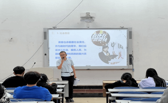 吴伯文副院长以《奋斗的青春最美丽》为主题,从四个方面进行授课:奋斗正当时;青春由磨砺而出彩,人生因奋斗而升华;以青春之名,铸时代之魂;无梦想,不青春。阐述了年轻人要敢于挑战、勇于探索、坚定决心、持续付出,保持乐观与积极上进的心态。