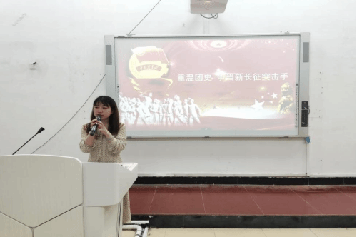胡彩艳老师以《重温团史,争当新长征突击手》为主题介绍了共青团的历史沿革和团的四个历史阶段。阐述了学习团章,是贯彻落实习近平总书记关于青年工作的重要思想,是每一名团员的必修课。作为共青团员,必须时刻牢记中国共产主义青年团在新时代的基本任务,应该做到修身立己,勇于担当,干在实处,才能在广大青年学生中立形象、树新风,发挥先锋模范作用。