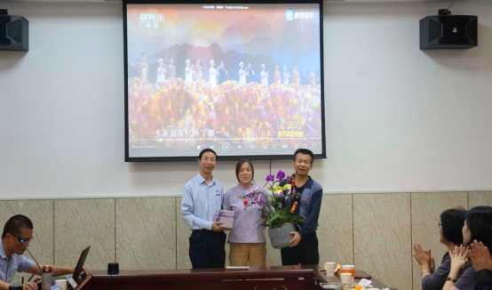 (余勋信书记、陈文胜院长共同为吴琼峰老师送上温馨的纪念品)