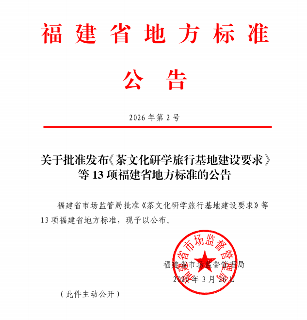 近日,福建省市场监督管理局正式发布地方标准《茶文化研学旅行基地建设要求》(DB35/T 2311-2026)。该标准由福建博物院牵头,我校作为主要起草单位之一深度参与研制,系全国首个专门针对茶文化研学旅行基地建设的综合性技术规范,也是我省首个横跨文化、旅游、茶产业三大领域的推荐性地方标准,标志着我省“福茶研学”迈入标准化、规范化发展新阶段。该标准研制历时两年,调研覆盖全省15个县市区代表性茶企与基地。我校充分发挥茶学教育、...