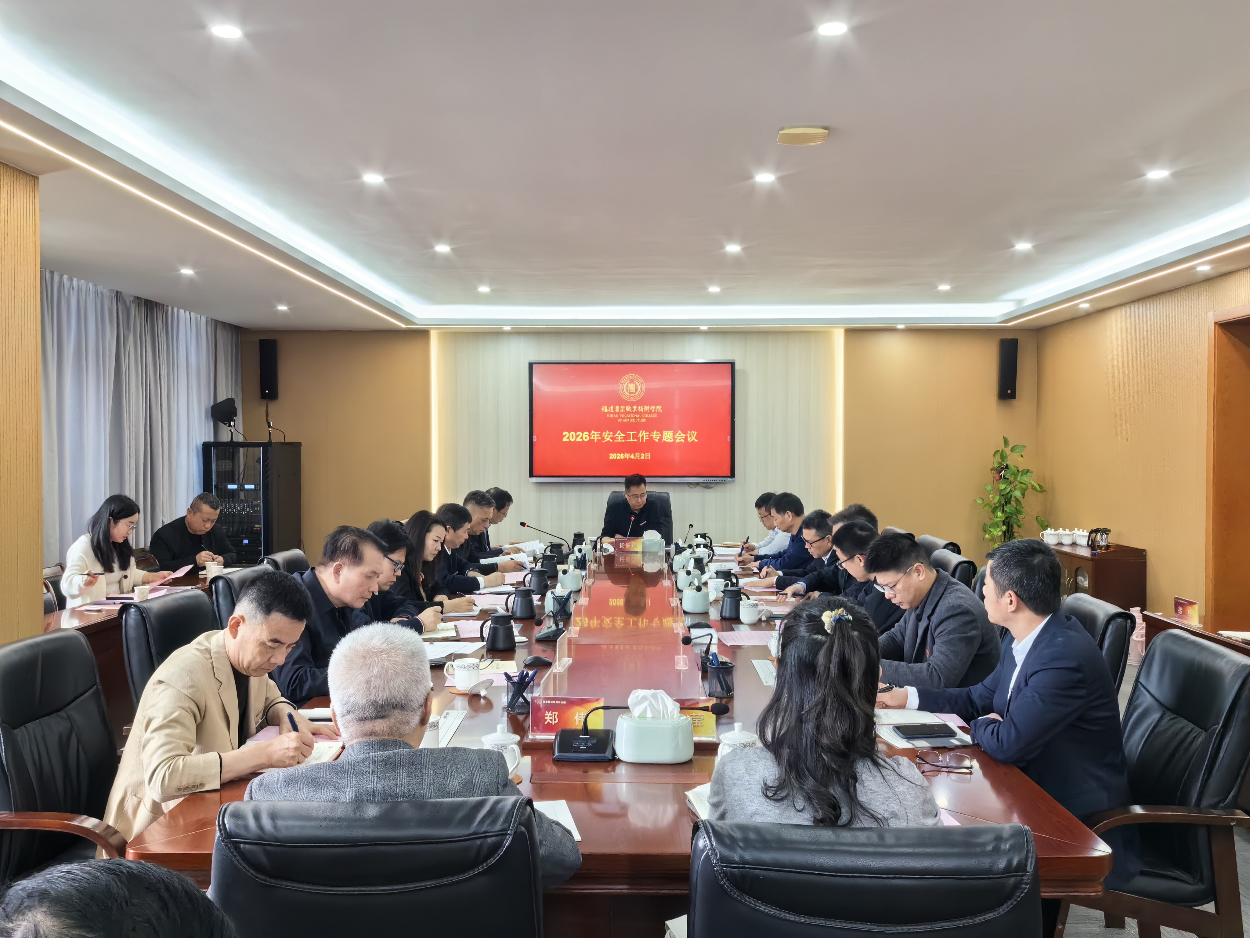 4月2日上午,学院在闽台楼816会议室召开安全工作专题会议,部署推进校园安全稳定工作。学院领导班子成员、全体中层正职干部(含主持工作)及合作学院负责人参会,会议由学院党委书记杨振坦主持。会上,党委副书记王振亮传达上级相关文件精神,全面解读校园安全稳定工作的总体要求、重点任务及风险防控要点。会议现场举行安全责任书签订仪式。学院党委书记杨振坦、院长何东进分别与二级单位党政负责人签订《2026年综治安全目标管理责任书》...