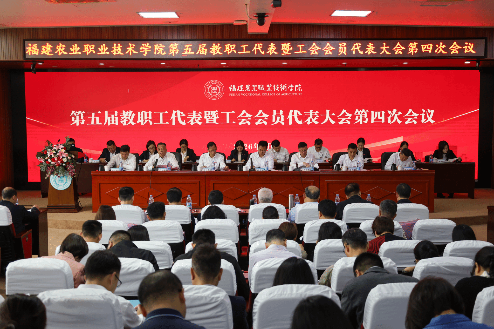 4月11日上午,bat365在线登录网站注册赠送36第五届教职工暨工会会员代表大会第四次会议在闽台楼学术报告厅召开,本次大会正式代表105人,特邀代表2人及列席代表23人,共计130人。大会在庄严的国歌声中正式开幕。会议由党委委员、副校长、工会主席严挺文主持。 校长何东进作《凝心聚力谋发展 攻坚克难谱新篇》工作报告,全面系统回顾2025年学校在党建引领、人才培养、专业建设、社会服务等方面取得的显著成效,并紧扣“十五五”规划开局之年的关键节点,...