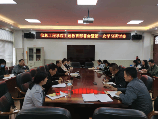 4月26日下午,信息工程学院在407会议室召开学习贯彻习近平新时代中国特色社会主义思想主题教育部署会暨第一次学习研讨会,会议由我院党总支书记欧高政主持,学院全体教师党员参加会议,校协调推进小组第一组成员林莹、林君瑾列席。
