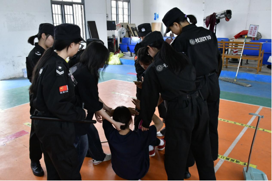为确保此次演练活动有序进行,活动前我院制定了反恐防暴演练预案和实施方案。方案明确各岗位的责任分工和演练程序,确保演练活动贴近实际。此次反恐防暴演练活动情景模拟为:一名同学由于学委记她旷课不满引发争吵为导火线,后班级进行劳动课时懈怠偷懒,经学委提醒却责怪对方多管闲事而发生争执,在场同学进行劝导,其因犯错而恼羞成怒致使事态升级变成恶性暴力事件。校园110在巡逻时发现该情况,立即启动应急预案,并使用防暴叉、警棍等防暴器械将学生团团围住,临危不惧地与其进行交涉、周旋,并迅速将其制服,随后联系辅导员到达现场处理。现场演练人员反应快速、处置果断,此次演练取得圆满成功。