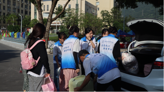 帮助新生们搬行李 带领新生们参观校园