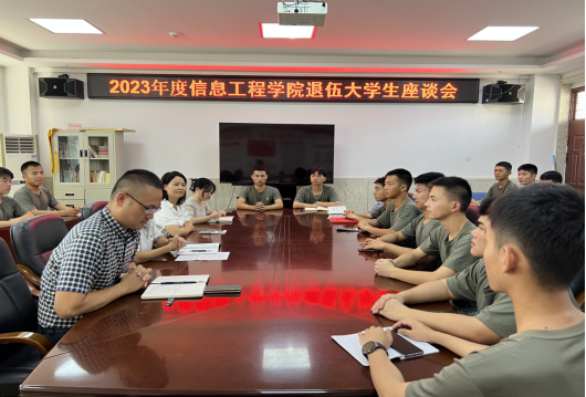 为深入学习贯彻主题教育精神,大兴调查研究,深入学习贯彻习近平新时代中国特色社会主义思想,坚持群众路线,扎实做好退役复学学生各项工作,全面了解和掌握退役学生复学后的思想、工作、学习状况,推进学院“调查研究”活动落地见效。2023年9月20日,学院于教学综合楼407会议室召开2023级退役复学学生座谈会,学院党总支书记陈小华、专职副书记张宏、学工办负责人王盛、学生第二支部书记胡大晶以及36退役复学学生参加座谈会。会议由学院王盛老师主持。