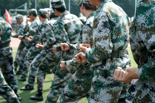 他们身着迷彩戎装