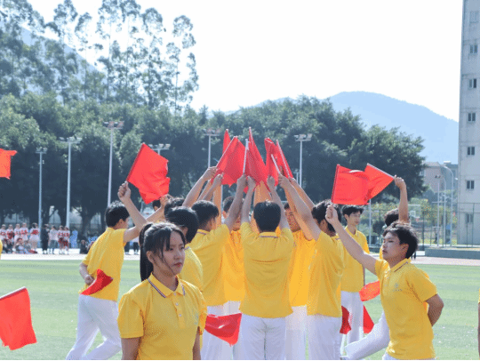 开幕式上,我院入场式方阵迈着整齐协调的步伐,坚定向前,他们训练有素、整齐划一,他们昂首挺胸从容不迫,满怀少年人的意气风发与挥斥方遒;鼓声阵阵,红旗漫卷,我院团体操方阵朝气蓬勃,乘着秋日的微风踏入操场,鲜艳的红旗整齐挥舞 ,他们青春洋溢,举手投足间尽显青春的勃勃生机,在秋日的阳光下焕发光彩。最后以铿锵有力的“岁月峥嵘,百舸争流,信息学子,力争上游”整齐口号为我院入场式表演画上完美的句号。