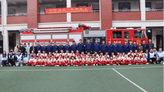 (全体同学与消防同志、志愿者合影)