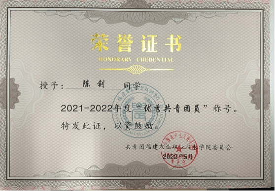 该生时刻以服务团员青年成长成才为己任,带着情怀在团的岗位上努力工作,始终踏实肯干、无私奉献,在担任院团总支第一副书记时,各项活动中都留下了她辛勤工作的身影。以较强的政治素养和责任感密切联系青年团员,并时刻提醒自己只有更加融入到同学中去,收集青年团员们的热点难点问题,及时帮忙解决困难。积极落实上级团委部署的各项工作,协助学院团总支开展团日活动和专题组织生活会,组织团员青年进行政治理论学习,时刻以饱满的热情积极投身到共青团工作中,全身心帮助老师同学工作。并荣获2021-2022年度“优秀共青团员”称号。