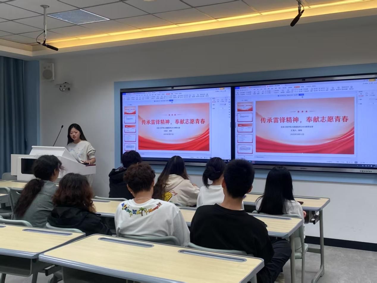 在团会上,团支书以精心制作的 PPT 为媒介,生动展现了雷锋的生平事迹和雷锋精神的深刻内涵,向同学们传递了无私奉献、助人为乐的理念。她强调,志愿服务是大学生践行雷锋精神的重要途径,在校园里,我们可以通过参与义务支教、社区服务等志愿活动让雷锋精神落地生根。团会尾声,团支书号召大家积极参与志愿活动,将雷锋精神内化于心、外化于行,让雷锋精神在新时代绽放更加璀璨的光芒。