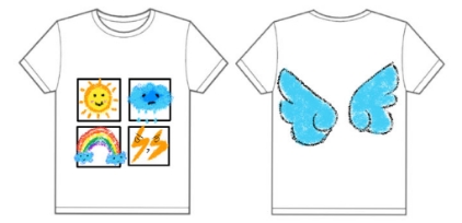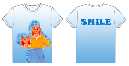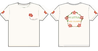电影《送你一朵小红花》为灵感,衣服以米白色为底色,给人以温暖的感觉,在正面,袖口各有一朵小红花,在衣服背面有五朵小红花,绿叶组成的花环,中间写了黄绿相间的“a little red flower”。激励自己积极向上,获得小红花。
