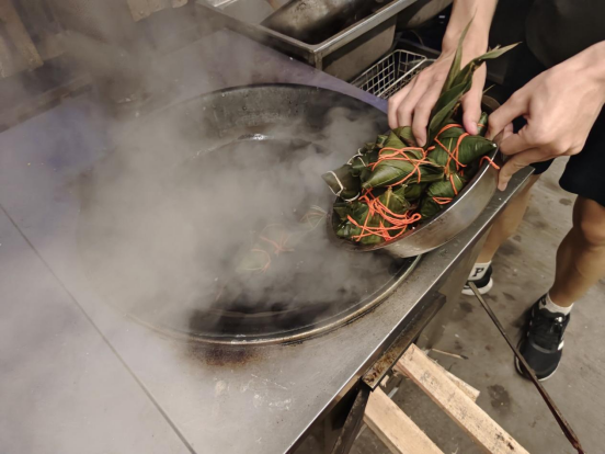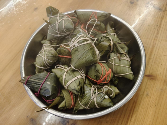 活动当天,物联网2102班部分班委便早早的前往农贸市场采购糯米、粽叶等原材料。随着夜幕降临,四十位同学欢聚一堂,大家齐动手,同参与,粽叶一卷,放肉填米,成型捆扎,边包粽子,边分享交流,现场洋溢着浓浓的端午气息。第一次体验包粽子的同学们积极向创业园的叔叔阿姨虚心求教,在叔叔阿姨的细心指导下,同学们包的有模有样,桌上摆满了一只只满载同学们辛勤劳动的粽子,整个现场洋溢着欢声笑语,其乐融融。期间,大家为6月生日的4位同学庆祝生日,众人齐唱生日歌,祝愿同学生日快乐,一起享受美食。在同学们品尝粽子时连绵不绝的赞扬声中本次团建活动完美谢幕了。