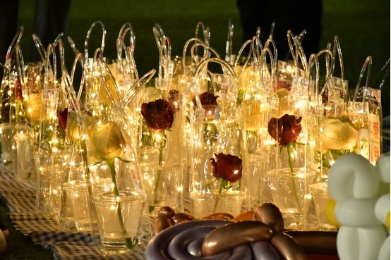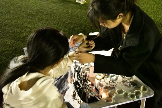 本次活动共设28个摊位,当夜幕笼罩校园,活动现场气氛一下子就燃起来了,摊主们早早就将自己的商品摆放好,或是精美的发饰、发夹,或是生机勃勃的绿色植物,或是鲜艳浪漫的杯花,或是袅袅茶香的茶水,更有各种惊喜盲盒……活动现场各摊主激情饱满地吆喝着,还邀请到了蓝鲸乐队倾情演出,活动现场气氛达到高潮。