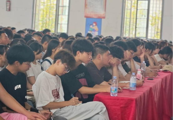 我班积极参加学校组织的入学教育讲座,讲座上讲诉了资助政策解读、学籍管理、学生日常行为规范教育等内容,同学们受益匪浅,带着的笔记本上填满了内容,满载而归。