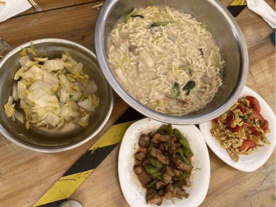 同学们分工明确,洗菜切菜、洗碗刷锅、生火起灶、制作面条……一切都有条不紊地进行着,同学们积极主动,热情洋溢,即使有些同学因经验不足而有些手忙脚乱,也在劳动中逐渐熟能生巧。在其乐融融的环境中,少年人独有的美好,正井然有序的发生着。