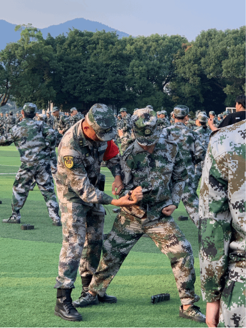 军训是大学生活的必修课,在这几天里同学们学习了稍息、立正、跨立、齐步走、停止间转法和擒敌拳等动作。同学们在操场上挥洒着汗水,练就坚韧挺拔的身姿,铿锵有力的步伐,响亮的口号声,都是蜕变成长的证明。伴随着一声口令“擒敌拳准备!”勾拳、摆拳、勾拳、抬肘、踢腿,每一个动作都整齐划一,一招一式尽显少年英姿,如鹰击长空、。。利刃出鞘,动作行云流水,无不展现出青年的意气风发。哨声一响,前一秒的欢闹,下一秒的肃静,手贴裤缝昂首挺胸,一天的军训又在哨声中进入了尾声。